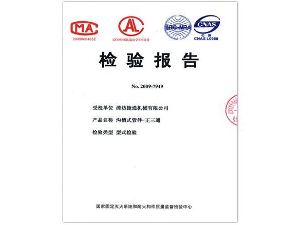 捷通(皆通)机械所生产的沟槽管件在太平洋保险公司进行投保